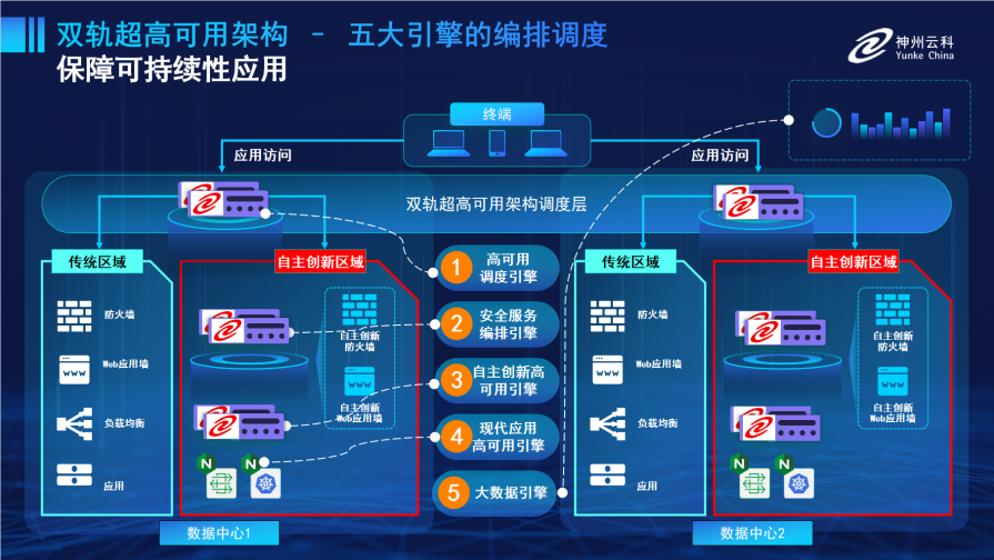 为满足数据中心双轨建设信创区和非信创区跨域协同,韦德国际1946顺利获得5大引擎实现双区无缝切换,跨域协同。