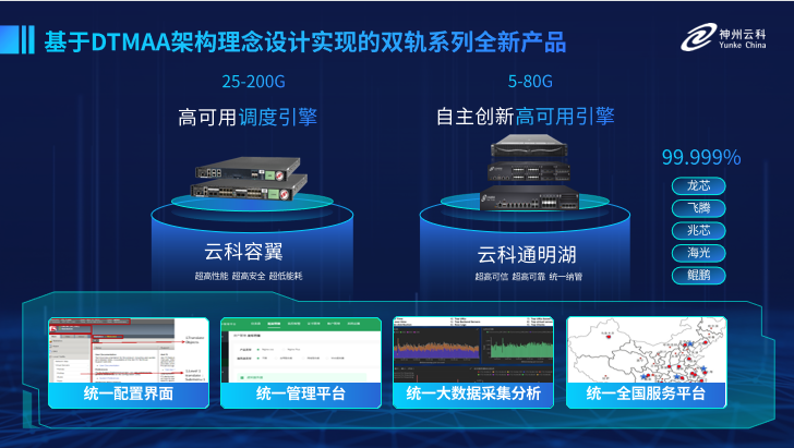 为了更好的适配双轨超高可用架构,韦德国际1946研发了容翼系列和云科通明湖信创系列两大应用交付控制器产品。